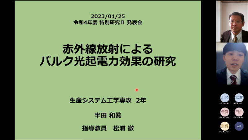 2022年1月25日、26日に専攻科 特別研究Ⅱ発表会、特別研究Ⅰ発表会を行いました。